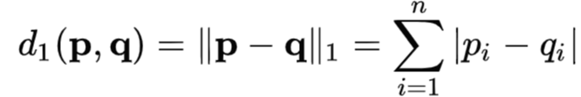 https://ko.wikipedia.org/wiki/%EC%9C%A0%ED%81%B4%EB%A6%AC%EB%93%9C_%EA%B1%B0%EB%A6%AC 2. 맨하튼 거리: 두 점의 좌료 간의 절대값 차이를 구함. 맨하튼 격자 무늬 도로에서 유래