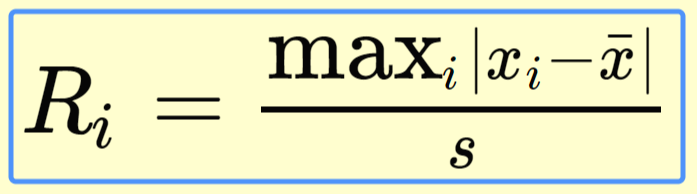 r개의 검정 통계량이 관측될 때 까지 관측치와 표본평균의 절대 편차의 최대값을 구하고 해당하는 x값을 데이터 셋에서 하나씩 제거하면서 r개의 검정 통계량을 구합니다.