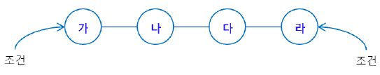 위의 그림에서 접근 경로는 12가지다(가 → 나 → 다 → 라, 가 → 나 → 라 → 다, …, …). 만약 조건1로 가 테이블로 진입할 때, 그 다음 접근 순서는 나, 다, 라 테이블 중에서 선택해야 할 것이다. 만약 조건2로 나 테이블로 진입 시 그 다음 접근 순서는 가 테이블이 되며, 이후 접근 순서는 다, 라 테이블 중에서 선택해야 할 것이다.