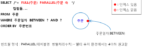 특히 PARALLEL 힌트절은 병렬 처리를 위한 힌트절이며 자원을 독점적으로 사용하므로, 사용 여부를 신중하게 결정해야 한다. 대부분의 DBA가 가장 많이 사용하는 힌트절이기도 하다. 일반 개발자들은 사용을 주저할 수도 있으나, 필자는 통제 가능한 범위 내에서 사용을 권장하는 편이다. 모든 배치성 쿼리에 사용 할 것이 아니라, 꼭 필요한 Heavy 쿼리를 선별하여 제한적으로 사용해야 한다.