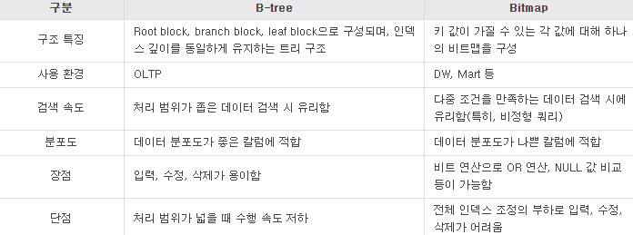 B-tree와 Bitmap 구조 비교 함수 기반 인덱스