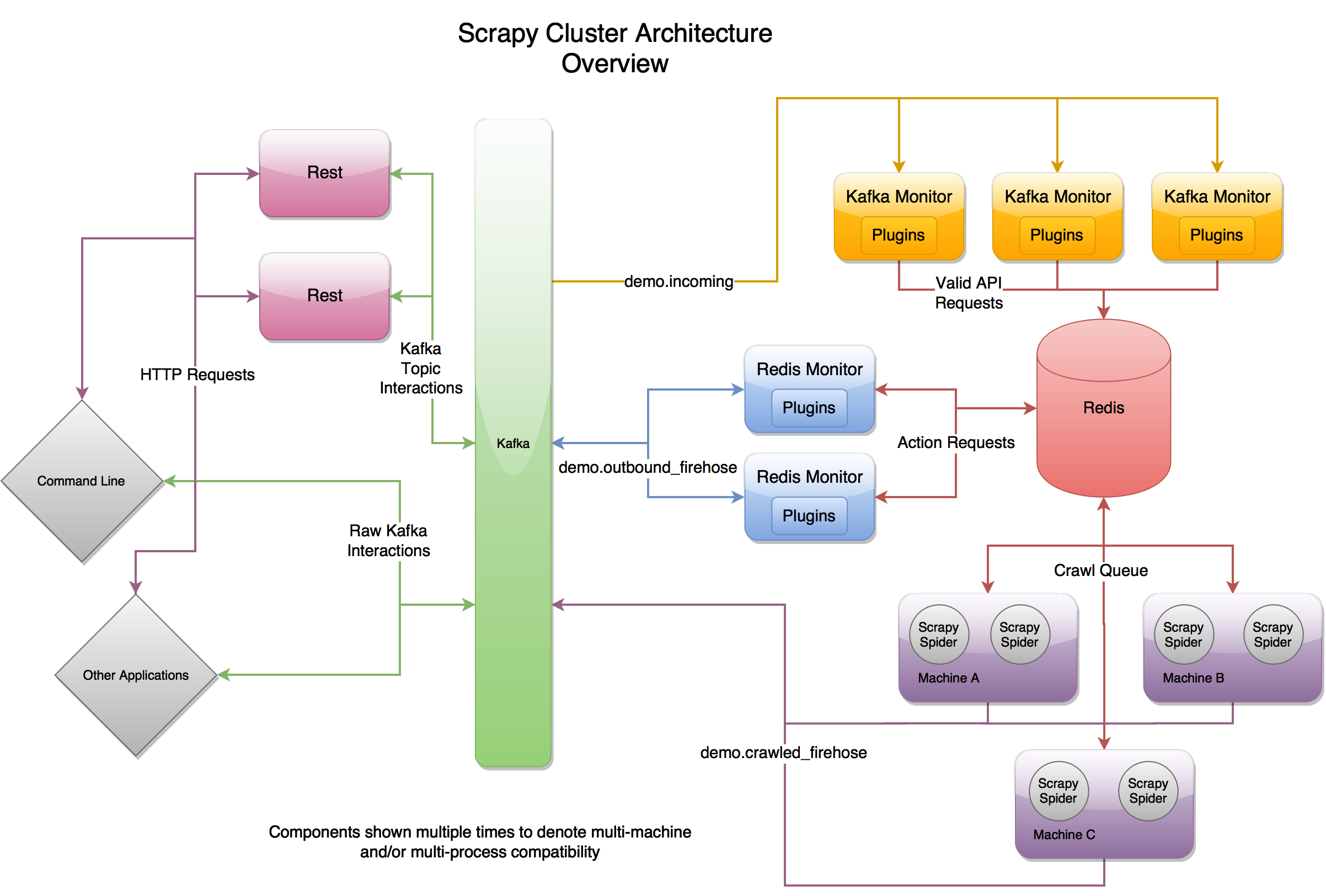 Scrapyd로 부족할 경우 scrapy-cluster[8]와 같은 구조로 설계하여 보다 대용량 데이터를 크롤링할 수 있습니다.